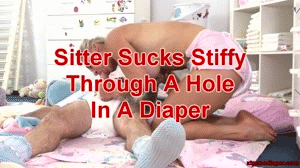 Hot sitter Kari is also wearing a diaper but your disposable is different. It has a hole in it that your willy pokes through. Kari loves cock so she gets it rock hard with her hand and then gives your stiffy an amazing sucking